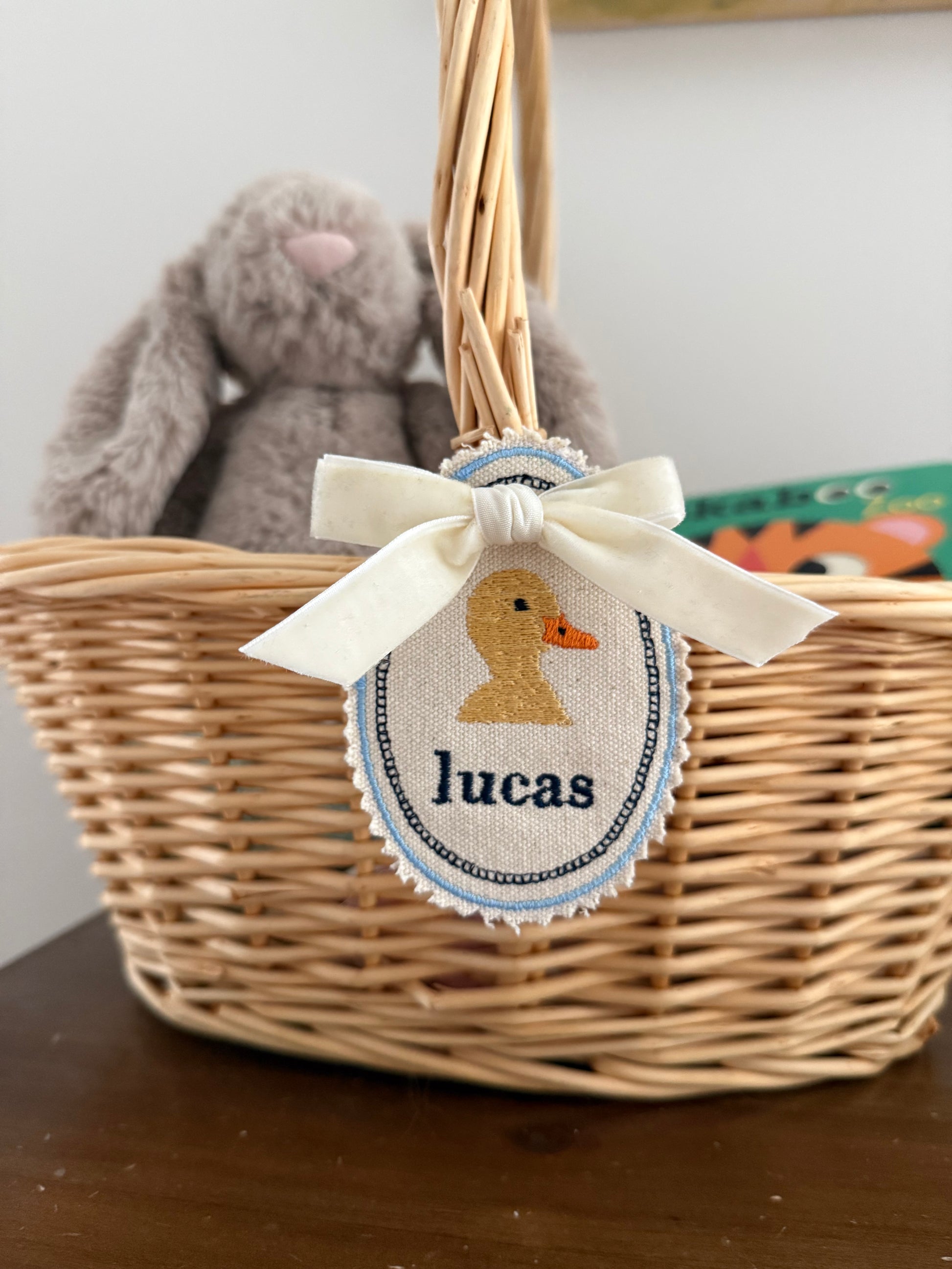 - This tag is customizable, please remember to enter a name for under the design and indicate what color thread you would like.